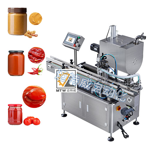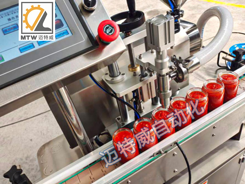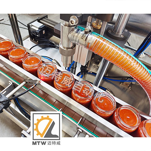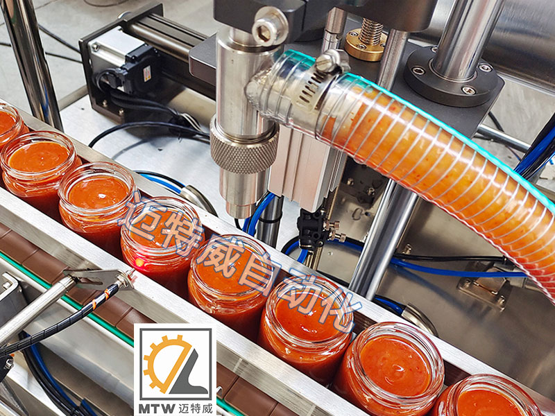 單頭伺服灌裝機采用伺服活塞定量灌裝,單頭灌裝,設備投入少,走瓶速度快,效率高,灌裝容量100-1000ml,適用于醬料、膏體、液體和粘性物料灌裝。