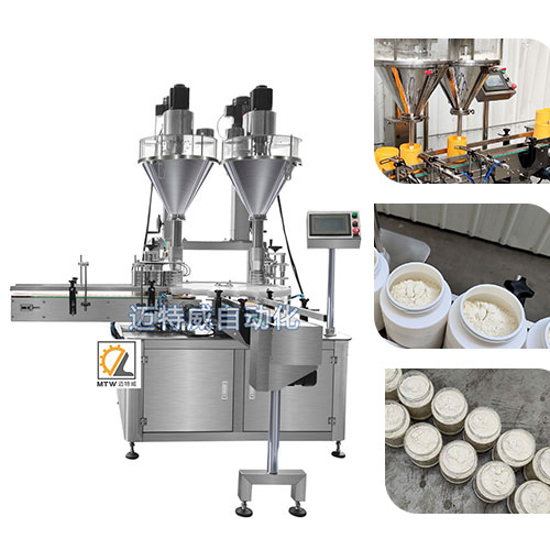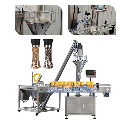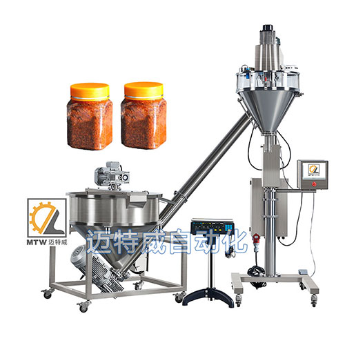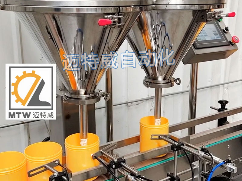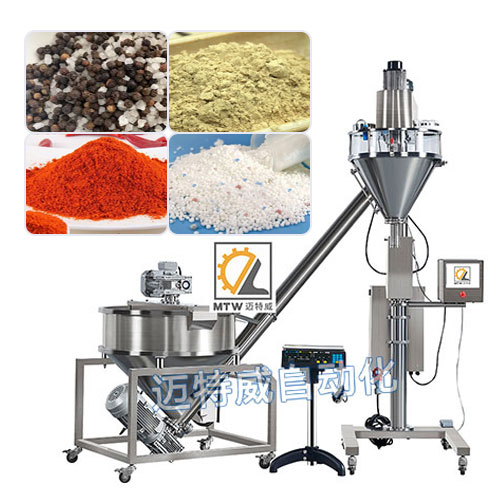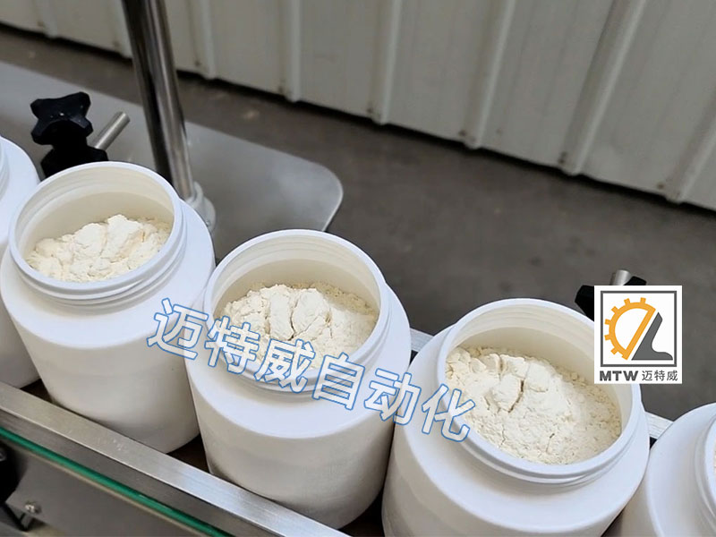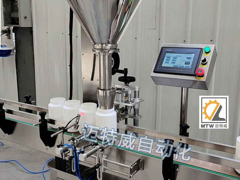 粉劑粉末(顆粒)定量灌裝機適用于粉末及小顆粒自動在線灌裝,能完成瓶子自動定位、充填及計量等工作,由一臺螺桿計量機、一臺鏈板輸送帶及一個氣動定位裝置組成,可與理瓶機、旋蓋機、貼標機等組成整套灌裝流水線。