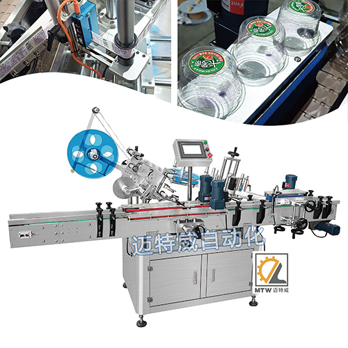 應用于各種錐形、圓柱形等包裝容器的上平面和側面的貼標,如塑料瓶、玻璃瓶、塑料罐、紙罐等,通過加定位光電,可以實現2張標簽定位貼標。可單機或在線使用,能同時對被貼物的上平面、側面進行貼標;實現與包裝機、噴碼機、裝箱機等組成無人化聯動線一體化生產。