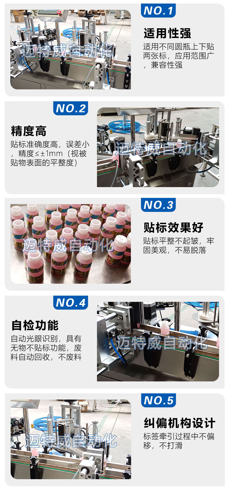 圓瓶同側上下貼標機主要適用于圓瓶的上下兩張標貼標。