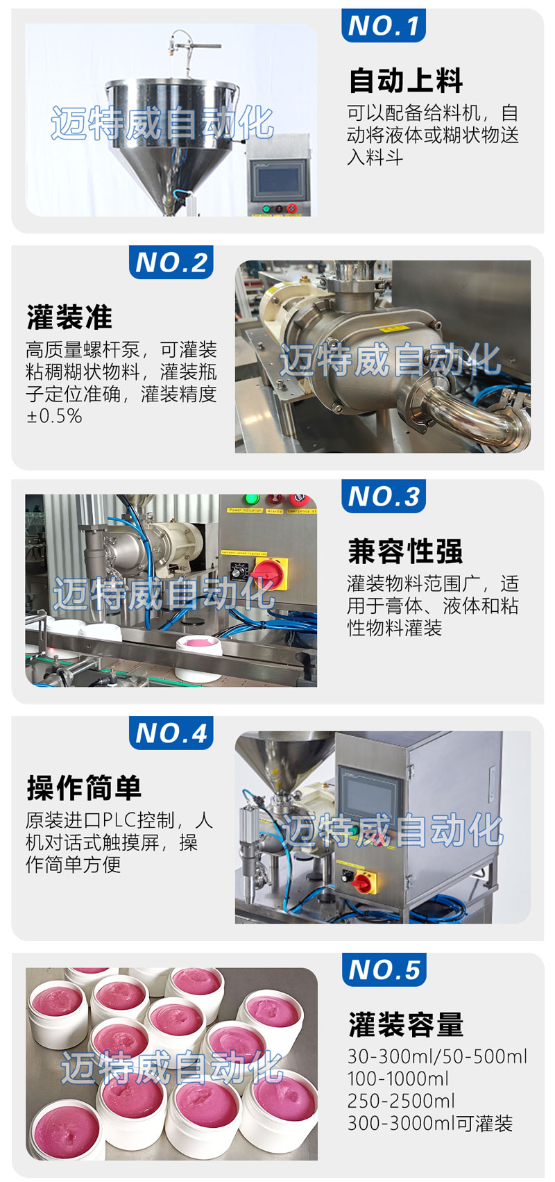 螺桿泵灌裝機灌用于食品、化妝品、制藥和化工等行業的奶油、精油、乳液、香水、蜂蜜、番茄醬、醬汁等液體或糊狀物。它還具有填充花生醬、油脂等粘稠糊狀物的良好性能。也可以填充液體或內部有顆粒的糊狀物。