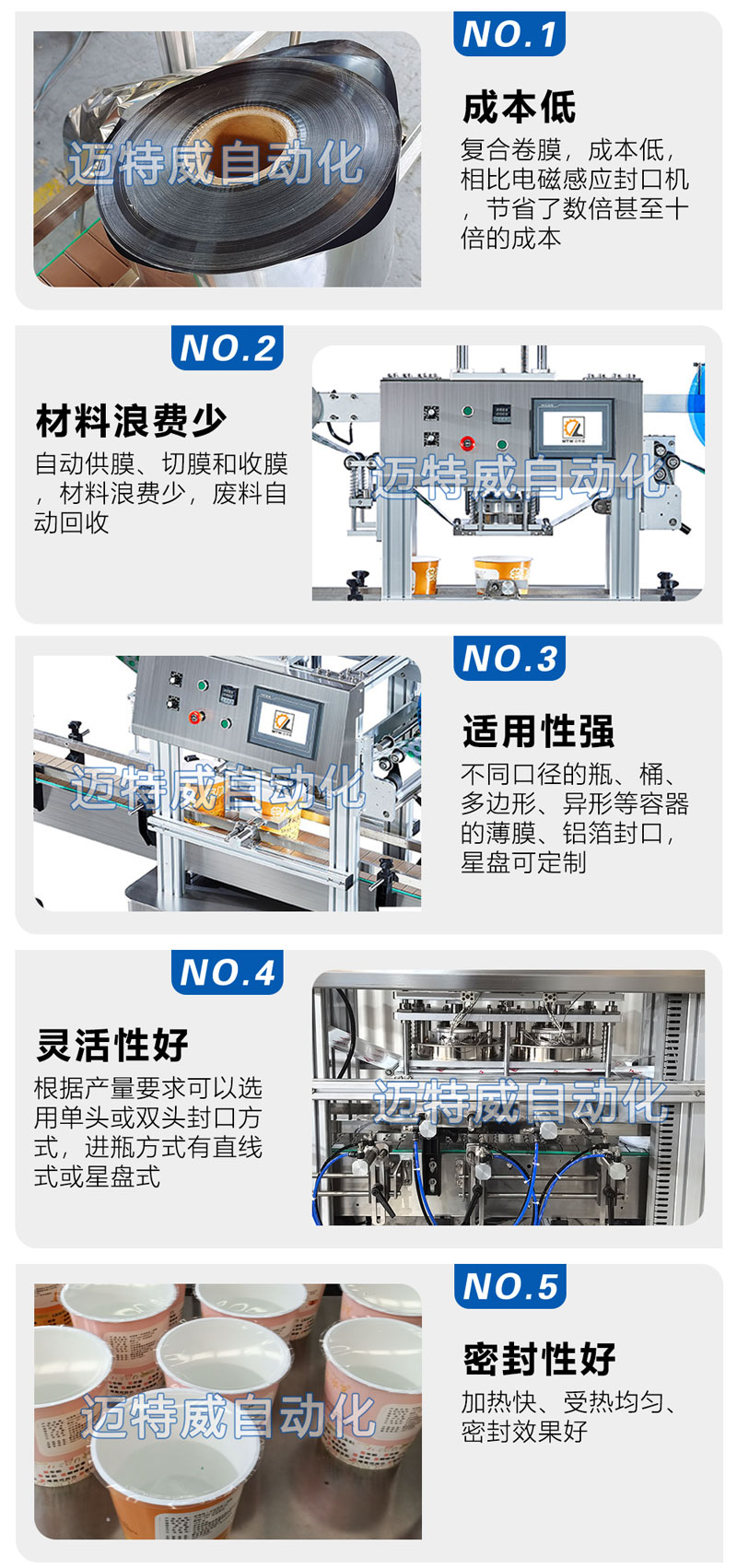 各種塑料圓形、方形、多邊形、異形等容器瓶口的鋁箔熱封口