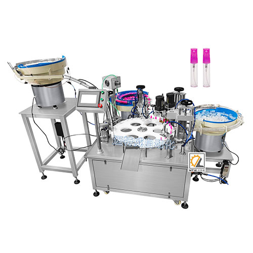 小噴霧瓶單頭磁力泵灌裝機,灌裝旋蓋一體機,是小劑量液體的自動生產線中的主要設備。
