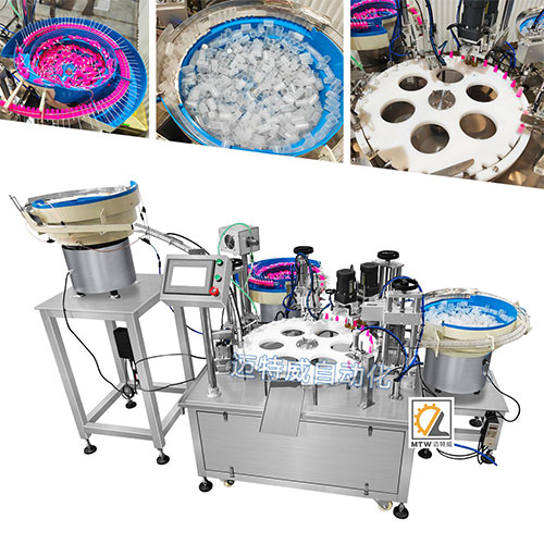 小噴霧瓶單頭磁力泵灌裝機適用于0.5-10、2-20、5-50、10-100ml的玻璃瓶、塑料瓶的自動理瓶、灌裝、上蓋旋蓋等,可以配上貼標機同步完成瓶身的自動貼標。如噴霧瓶及其他小瓶液體灌裝。