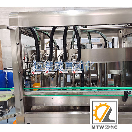 ● 灌裝頭在傳送帶上方探測(cè)到待灌裝的容器,灌裝頭迅速下降,并以與傳送帶相同的速度同步運(yùn)動(dòng),在同步運(yùn)動(dòng)的過程中,灌裝閥打開,將液體精準(zhǔn)地注入容器內(nèi),灌裝達(dá)到預(yù)設(shè)容量后,閥門關(guān)閉,灌裝頭抬升并快速返回起始位置,準(zhǔn)備下一個(gè)循環(huán),在運(yùn)動(dòng)中完成灌裝作業(yè)。