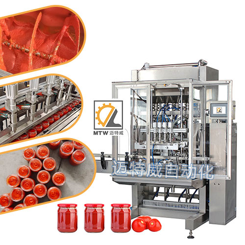 醬料灌裝機(jī)采用伺服活塞灌裝機(jī)灌裝,活塞缸體控制灌裝量,灌裝準(zhǔn),誤差小,灌裝量可在100-1000、200-2000、500-5000ml范圍內(nèi)任意選擇調(diào)整,適用于不同瓶型的醬料在線自動灌裝。