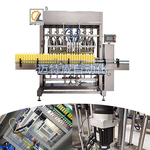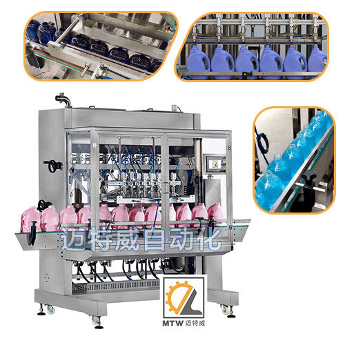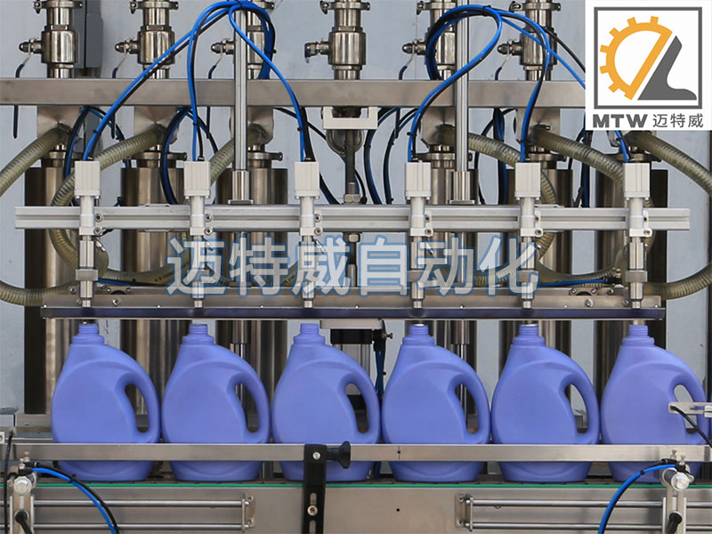 洗衣液/洗潔精灌裝機采用伺服活塞灌裝機灌裝,活塞缸體控制灌裝量,灌裝準,灌裝量可在100-1000、200-2000、500-5000ml范圍內任意選擇調整,適用于不同瓶型的日化用品在線自動灌裝,水乳膏一機兼容。
