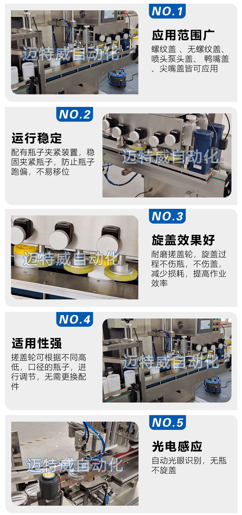 應用行業:該旋蓋機適用于醫藥、日化、食品、酒水、飲料、糧油等行業的塑料螺紋蓋、泵頭蓋上蓋和旋蓋。
