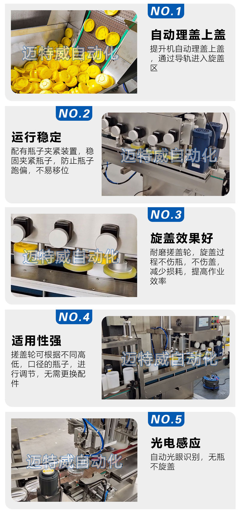 ● 整個(gè)過程包括:進(jìn)瓶、旋蓋等主要步驟;