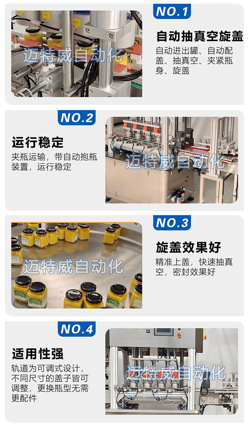 真空旋蓋機應(yīng)用于調(diào)味品、罐頭、蜂蜜、泡菜等行業(yè)的玻璃瓶馬口鐵蓋真空旋蓋。