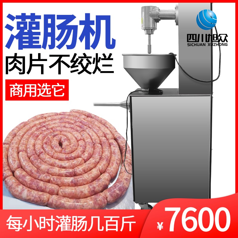 全自動商用灌腸機——XZ-320灌腸機,專門針對灌四川香腸的肉片,肉片不攪碎。